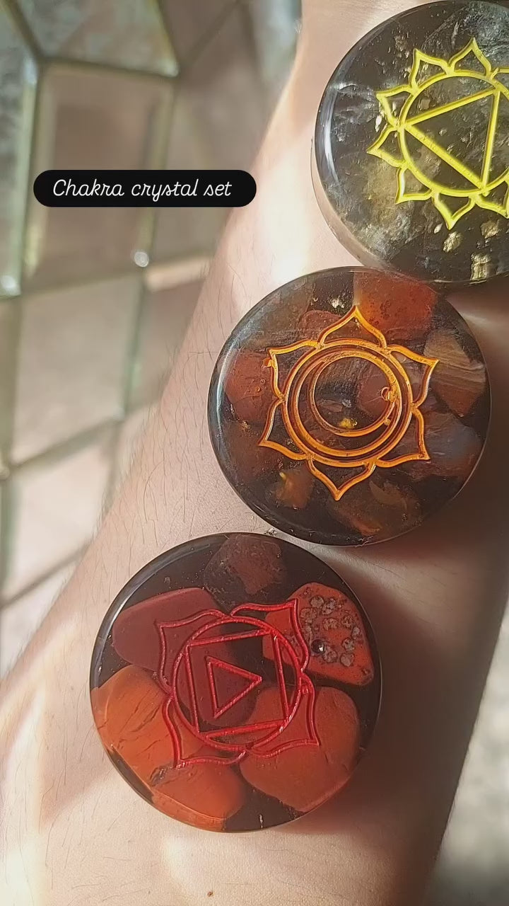 Elevate your healing journey with our handcrafted Chakra Crystal Healing Set, designed for personal wellness and holistic practices. Each set includes 7 resin chakra discs embedded with real crystal chips, crafted to align and balance your energy centers. Whether you’re on your own healing path or a holistic therapist enhancing your practice, this set is a powerful tool for Reiki, meditation, yoga, and energy work.