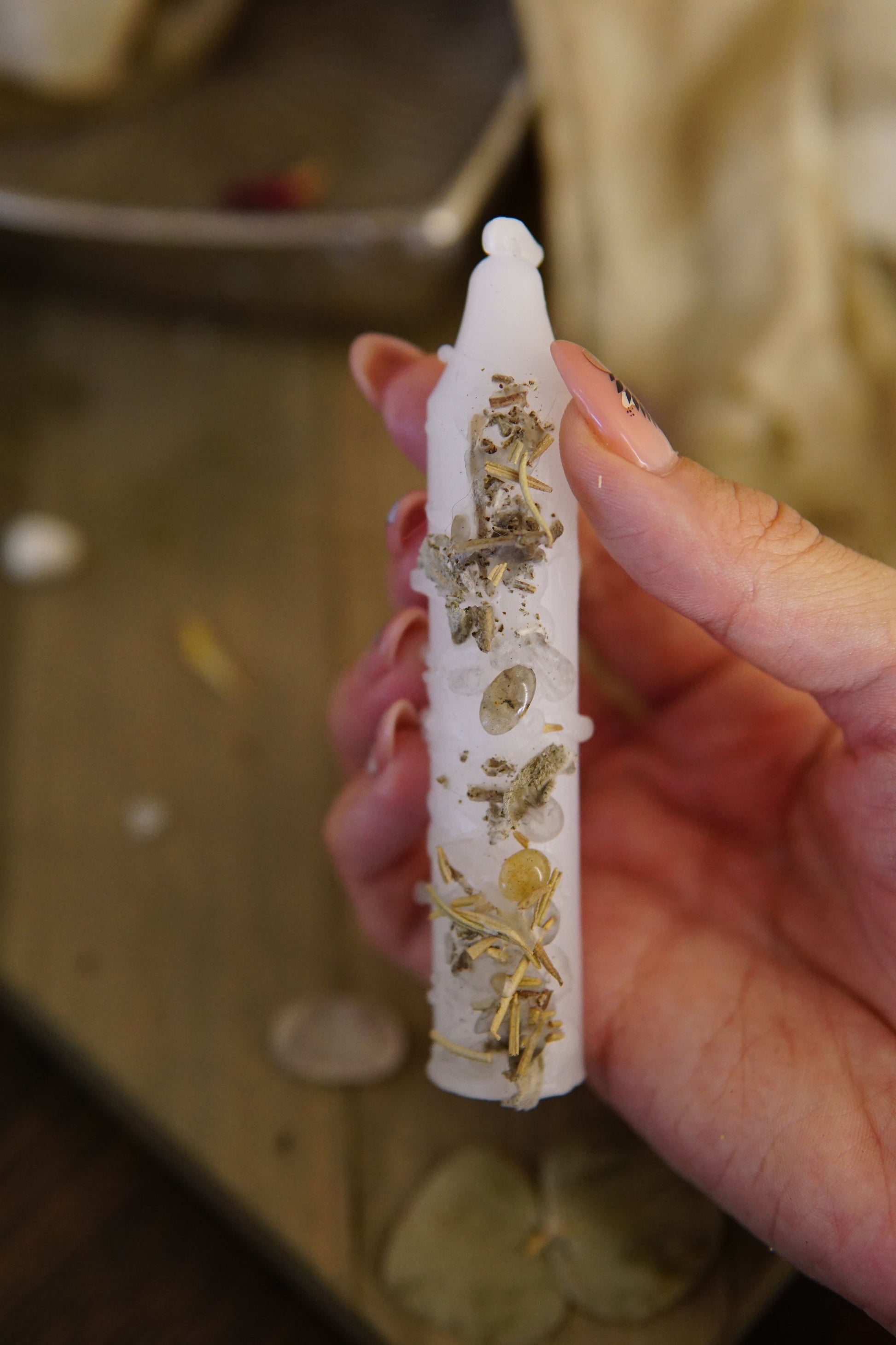 Moonlight Intention Candle- (Calmness of mind, body and spirit) Moonlight evokes a sense of tranquility and introspection. The gentle, soft glow of the moon is often linked to serenity and reflection. It encourages stillness and a connection to one’s inner self. Highlighting the importance of peace and balance in achieving mental and spiritual well-being, suggesting that moonlight fosters a soothing atmosphere conducive to healing and relaxation. When you light this candle it will help you open the third eye and crown chakra for connecting to your spirit self. You can use this when you are stressed or when you need time to meditate enhancing the experience.
